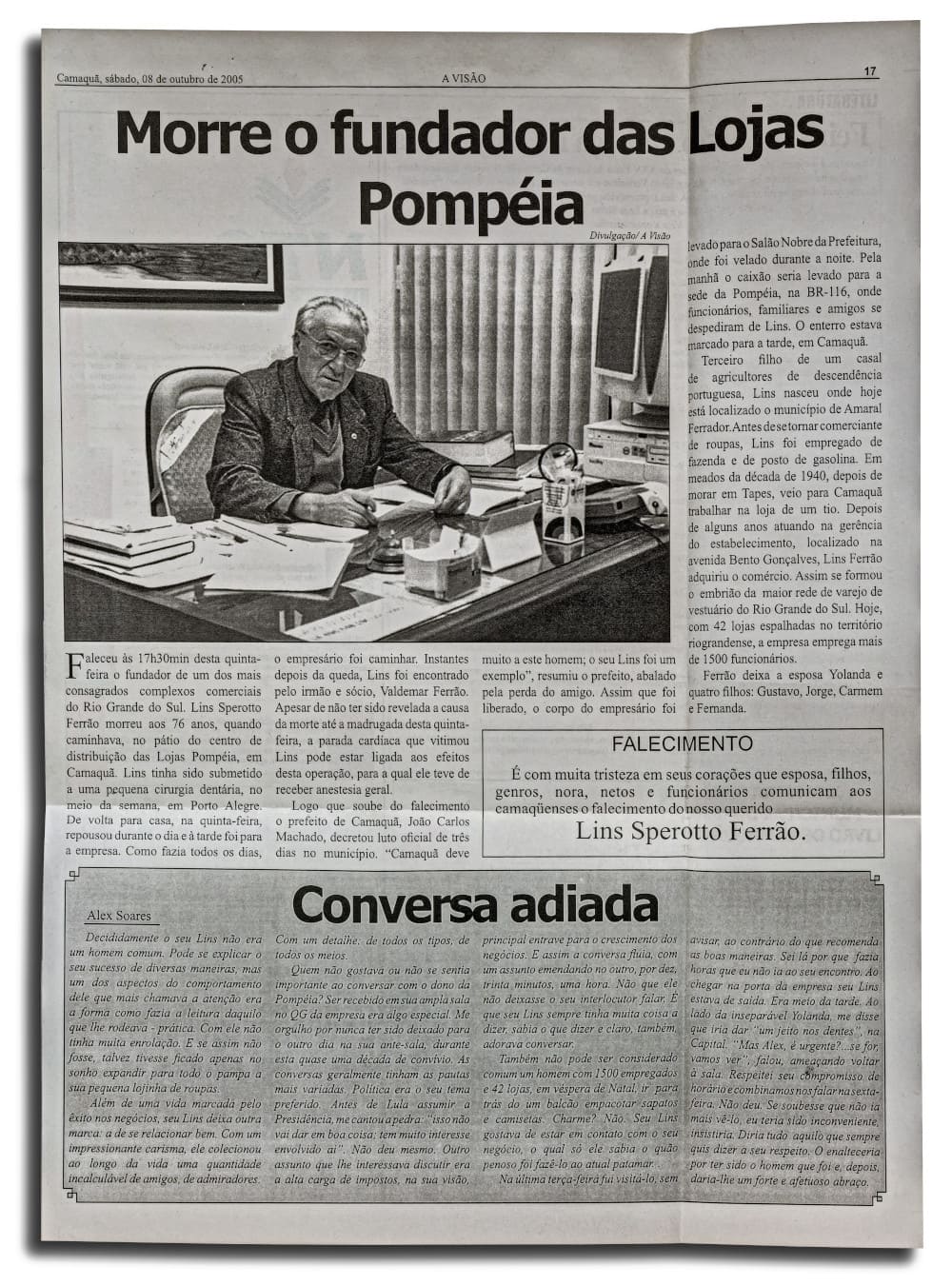 Embarque com a gente nesta imersão pelo universo do Grupo Lins Ferrão. Você vai conhecer a nossa história, como tudo começou. Esse memorial é uma homenagem ao fundador das Lojas Pompéia, Lins Ferrão.